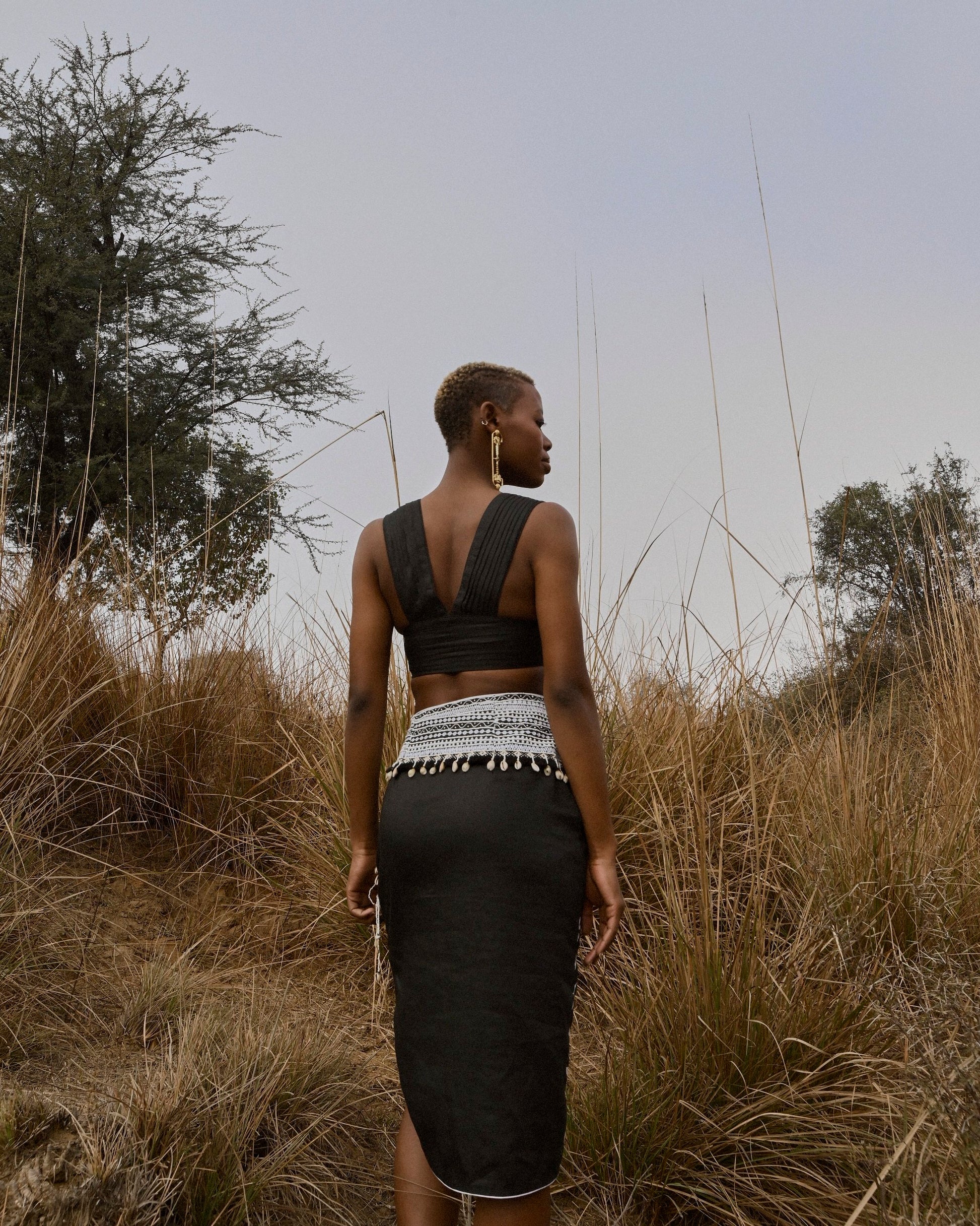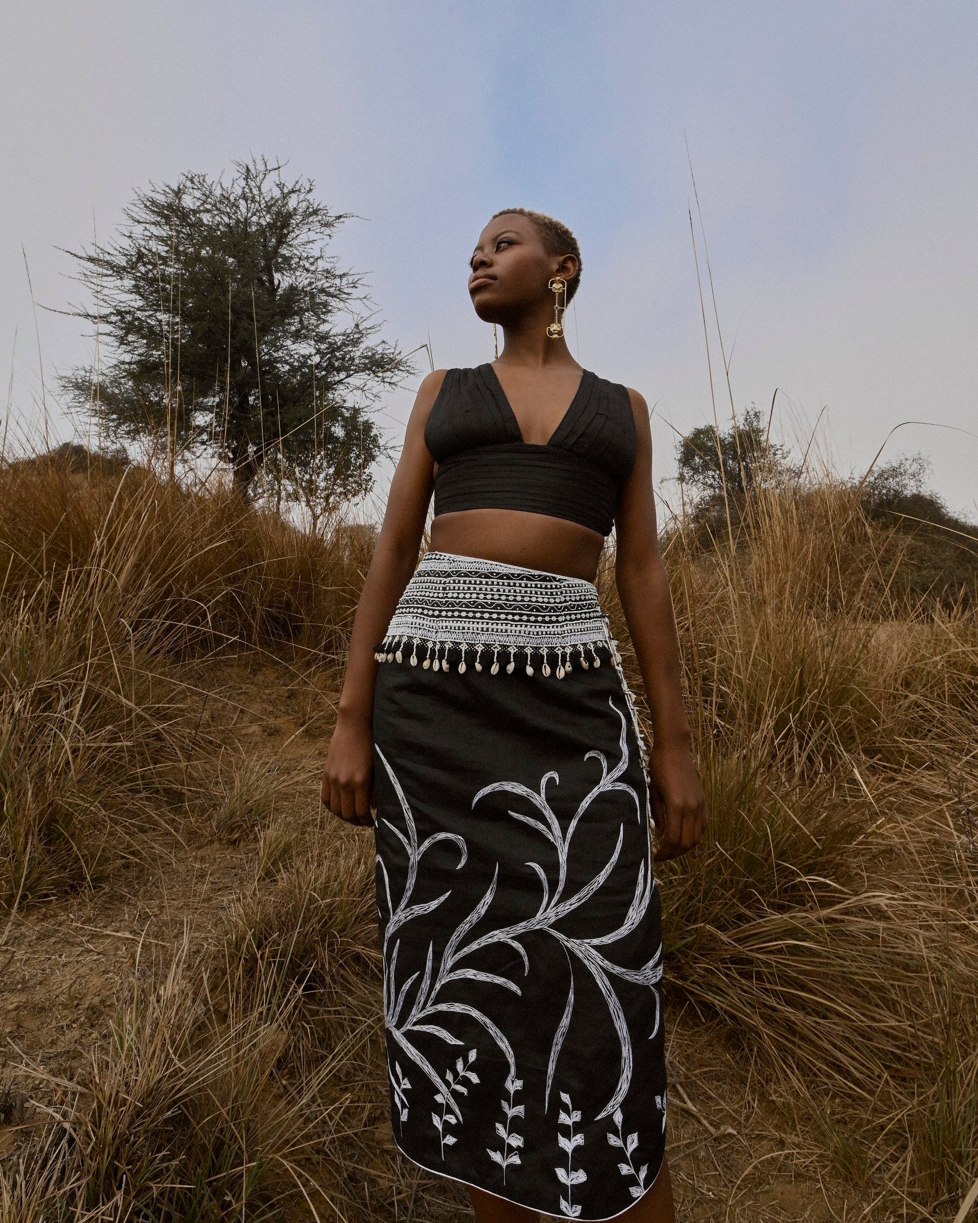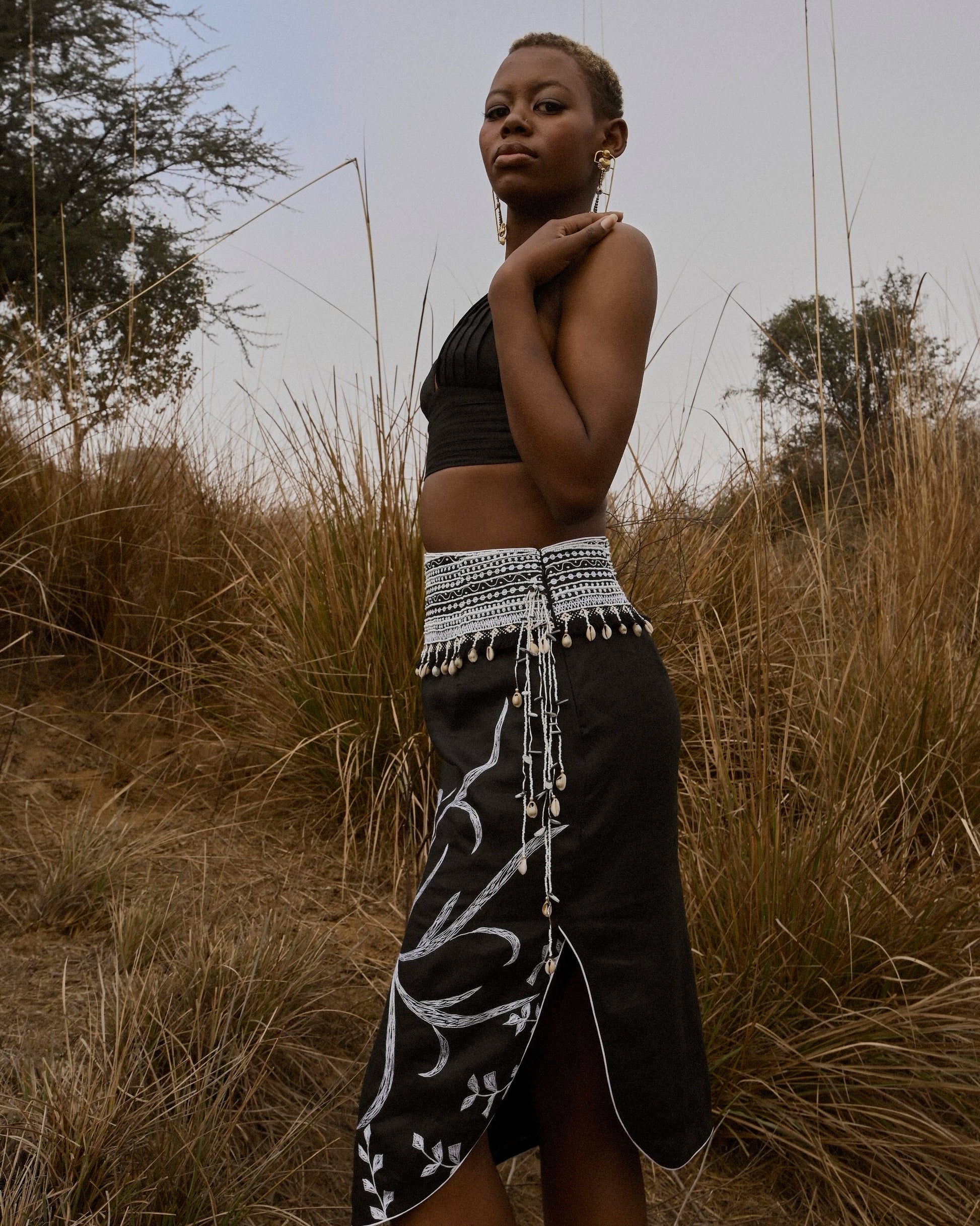 Hand-embroidered and decorated with shells, the Adelaide skirt is a unique garment. It's beautiful detailing and comfortable fit make this midi skirt a must-have in your wardrobe.