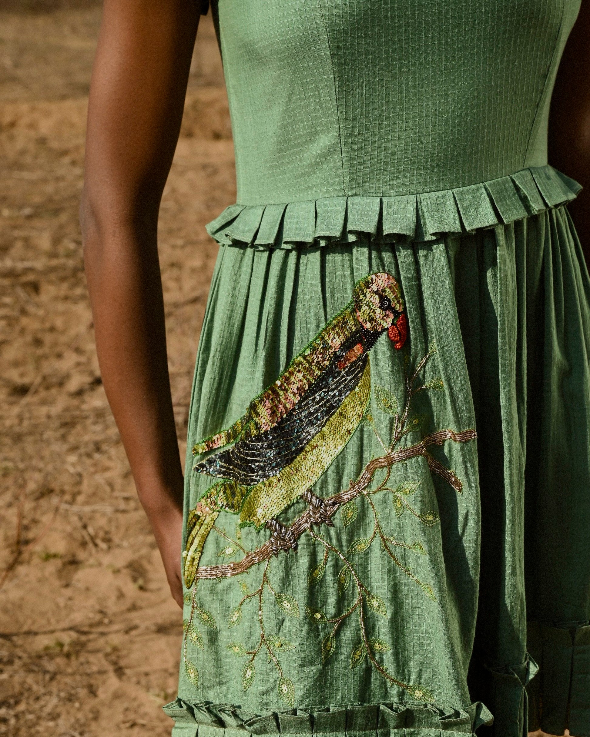 The Aliyah Dress is understated, but comes replete with an intricately embroidered bird on one side.Wear this short and sweet garment for a date night or outings with friends.