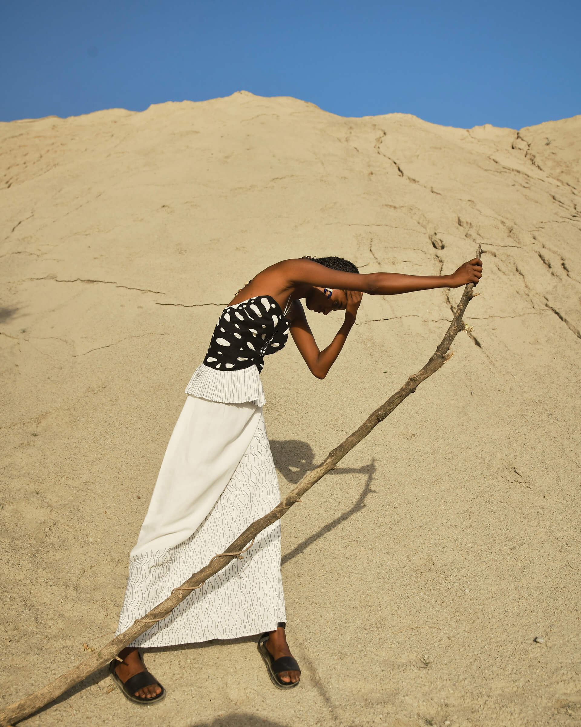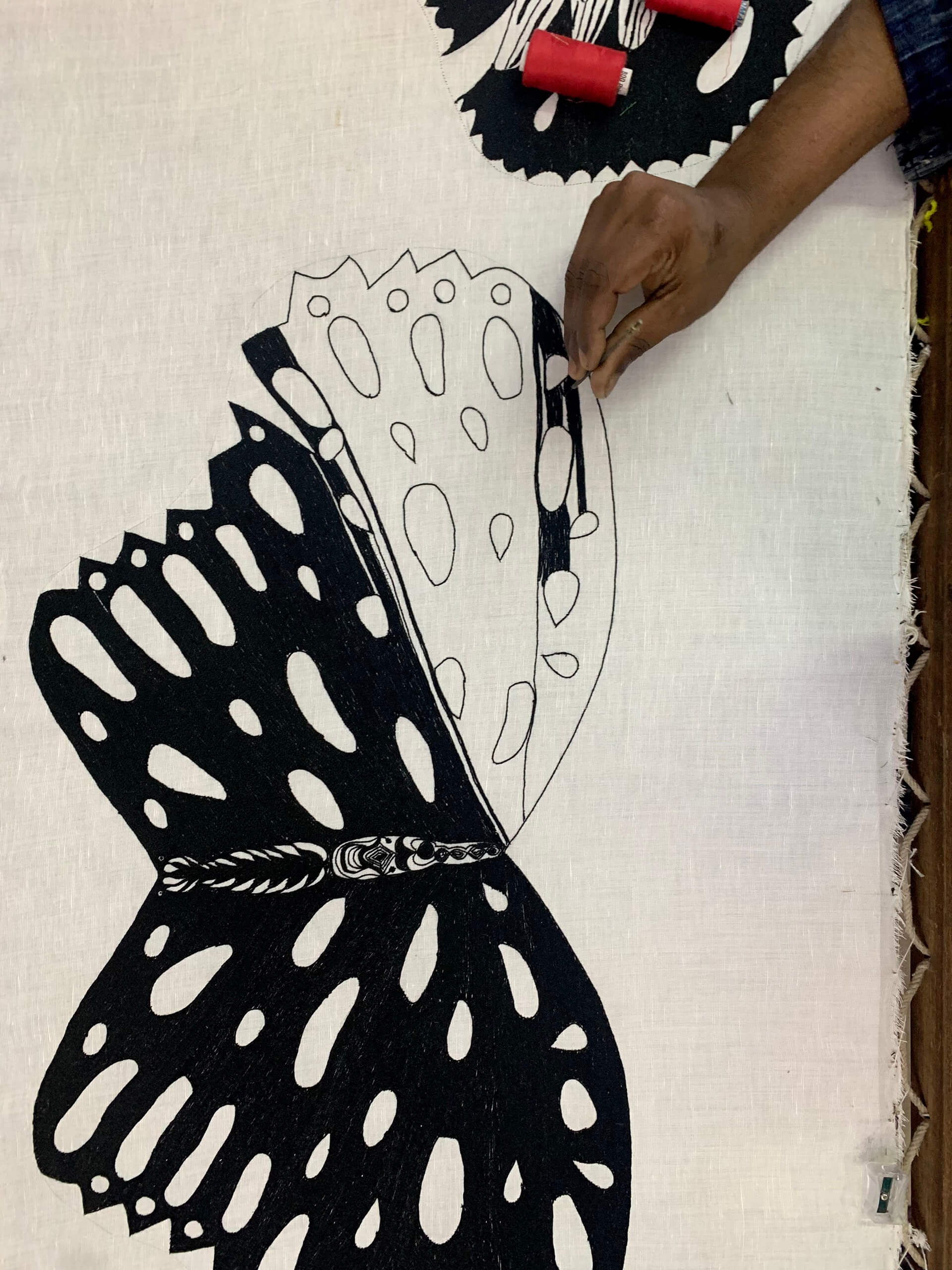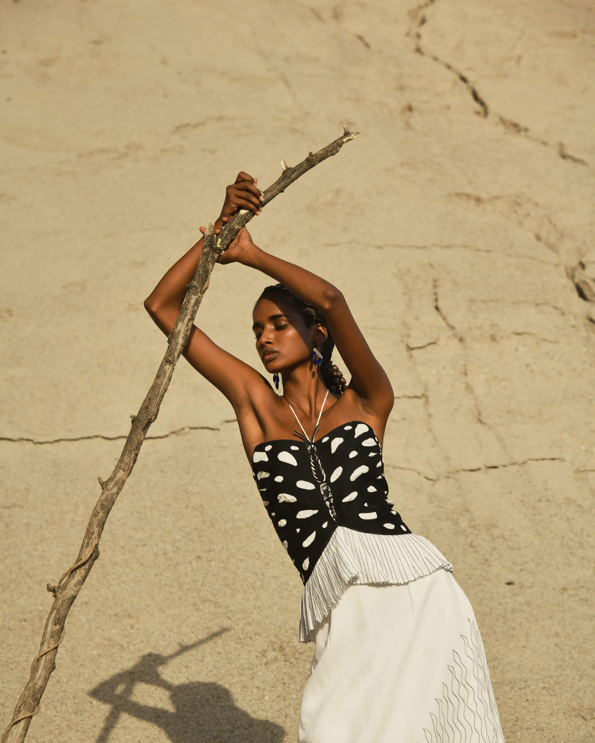 Wearing the Cleopatra Dress, you will feel like a beautiful moth traversing through a wild world. The speciality of Cleopatra lies in its carefully embroidered details. A moth completely fills up the richly crafted halter top, which you can adjust to your preference. Below, the dress features a hand-pleated waistline, a pleated frill and a long skirt in pure linen that falls beautifully to the ground. A statement piece, Cleopatra is a handmade garment to be loved and cherished for a long time.