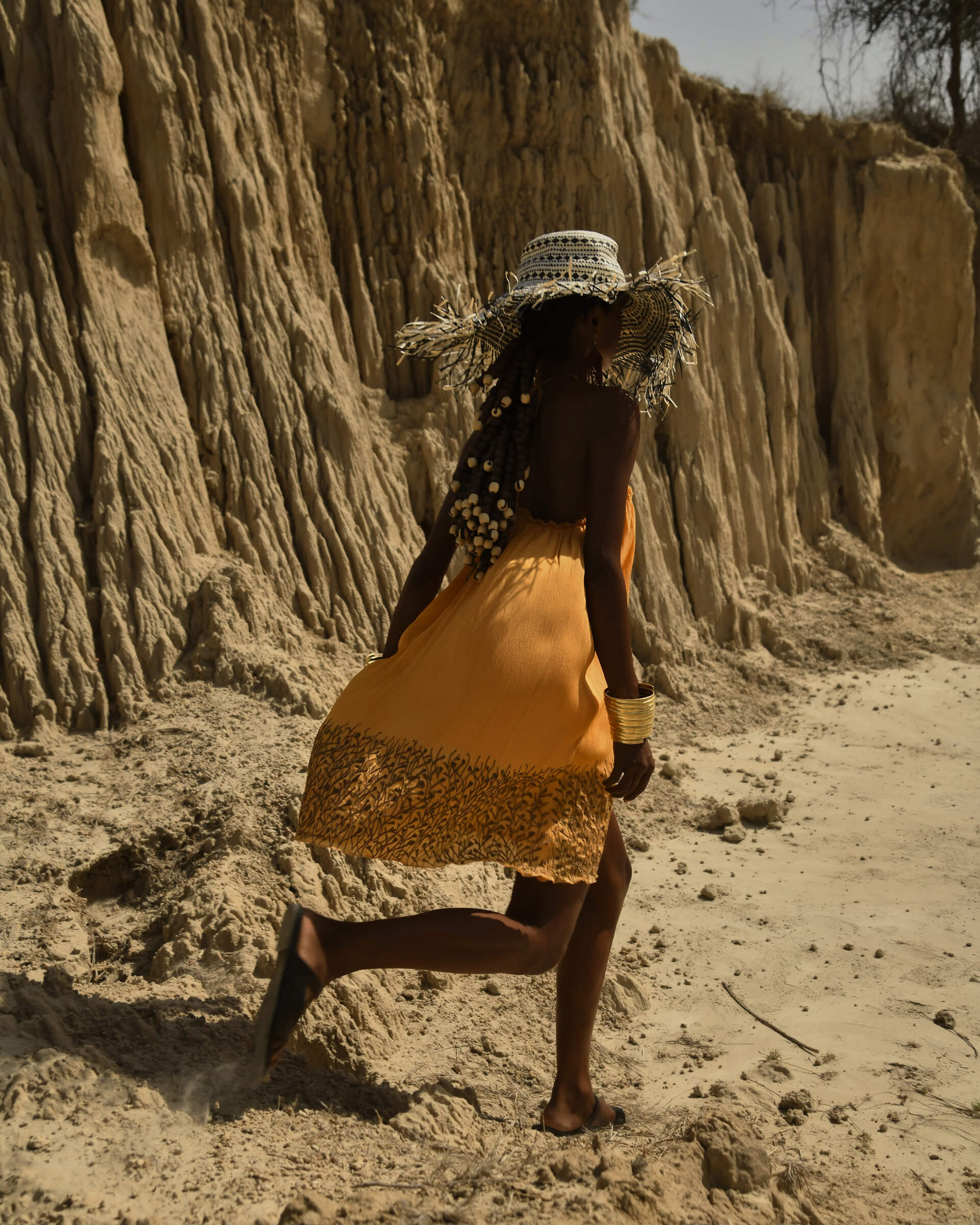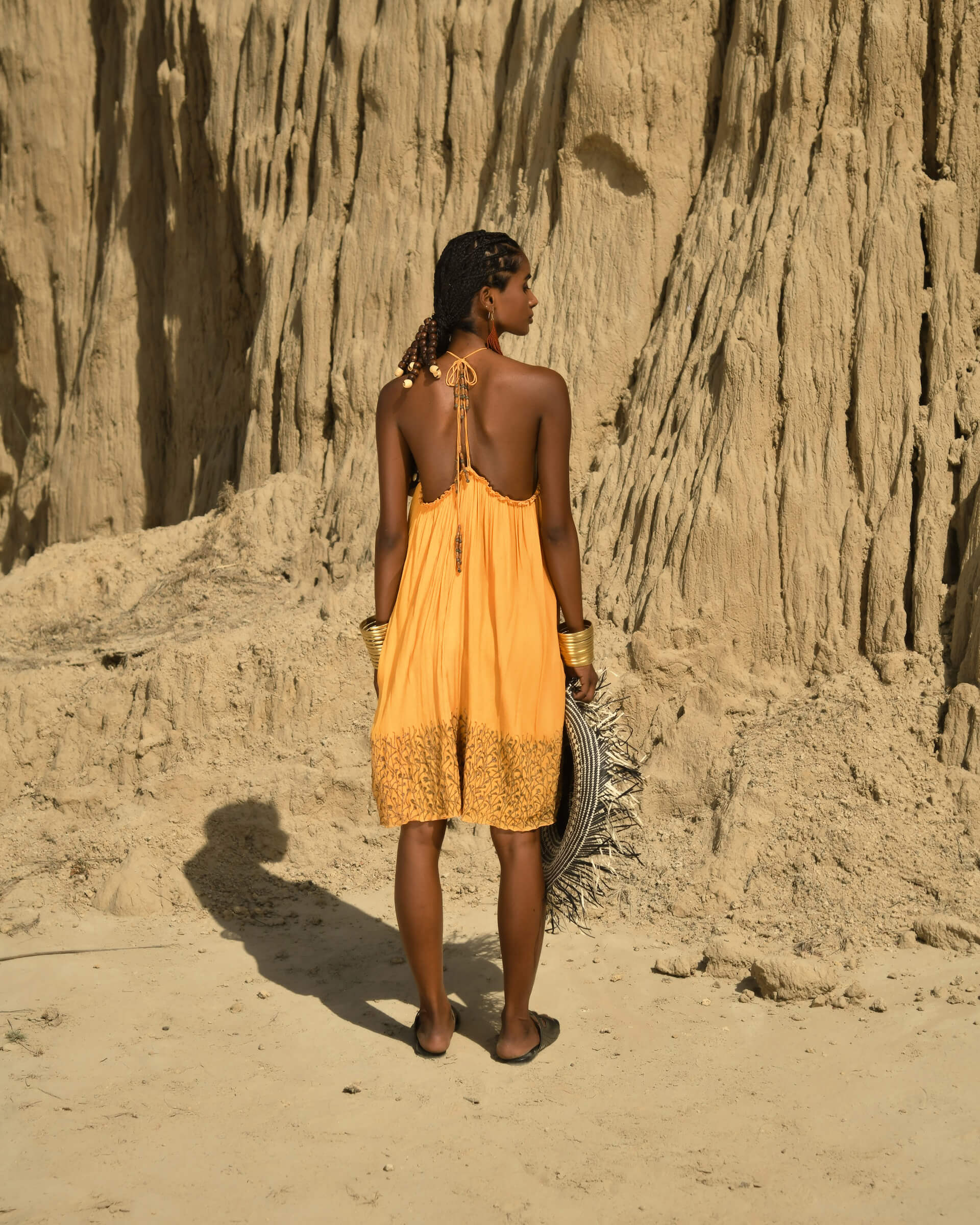 Inspired by the yellow-orange colour of the savannah grasslands, the Dawn Dress is carefree and relaxing. It features subtle, hand-embroidered grass at its it base. This is the perfect outfit for a casual meeting with friends, and definitely your go-to garment on a chill holiday.