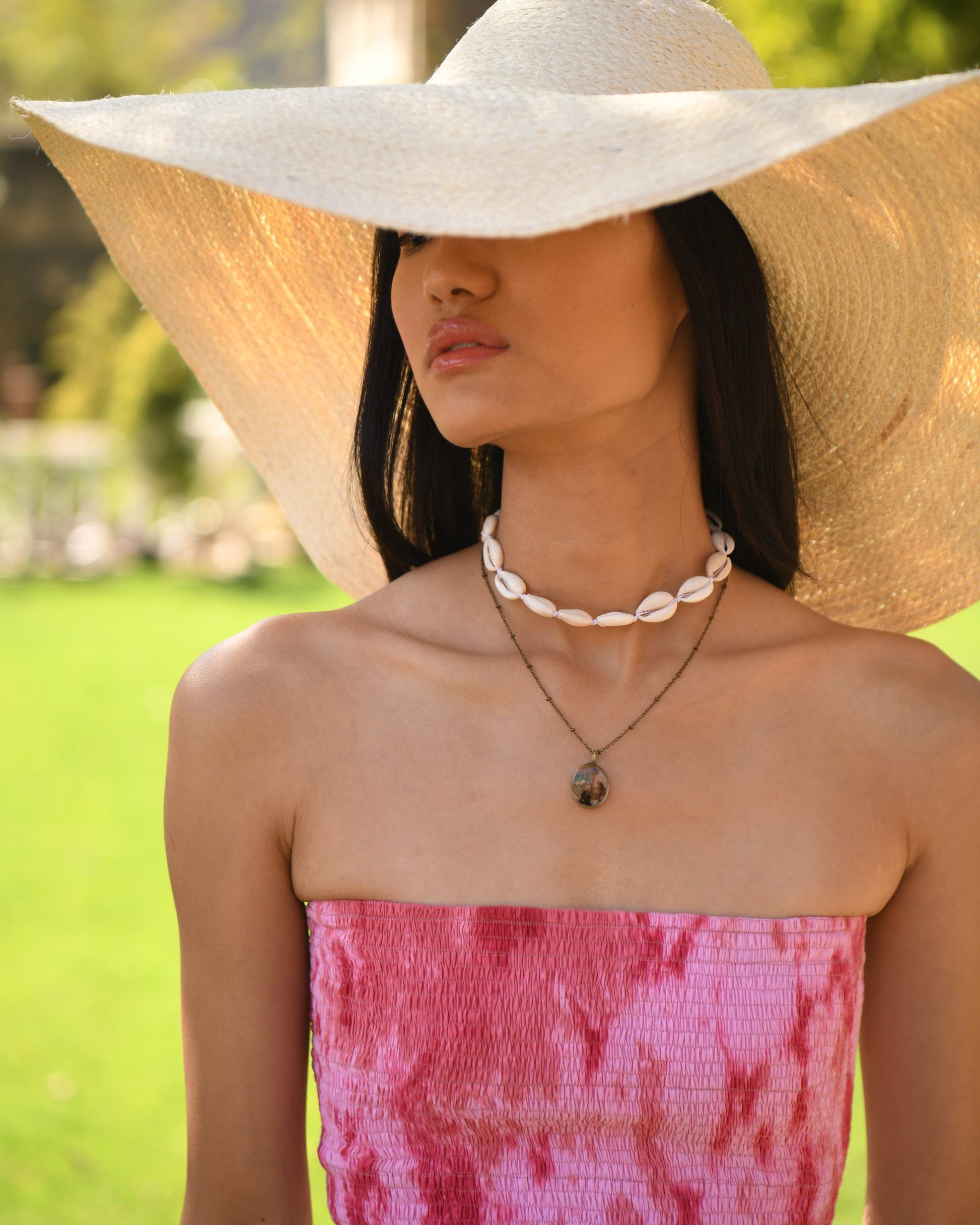 A spunky tie-dye bandeau in a pretty pink. This is the perfect addition to your summer wardrobe.