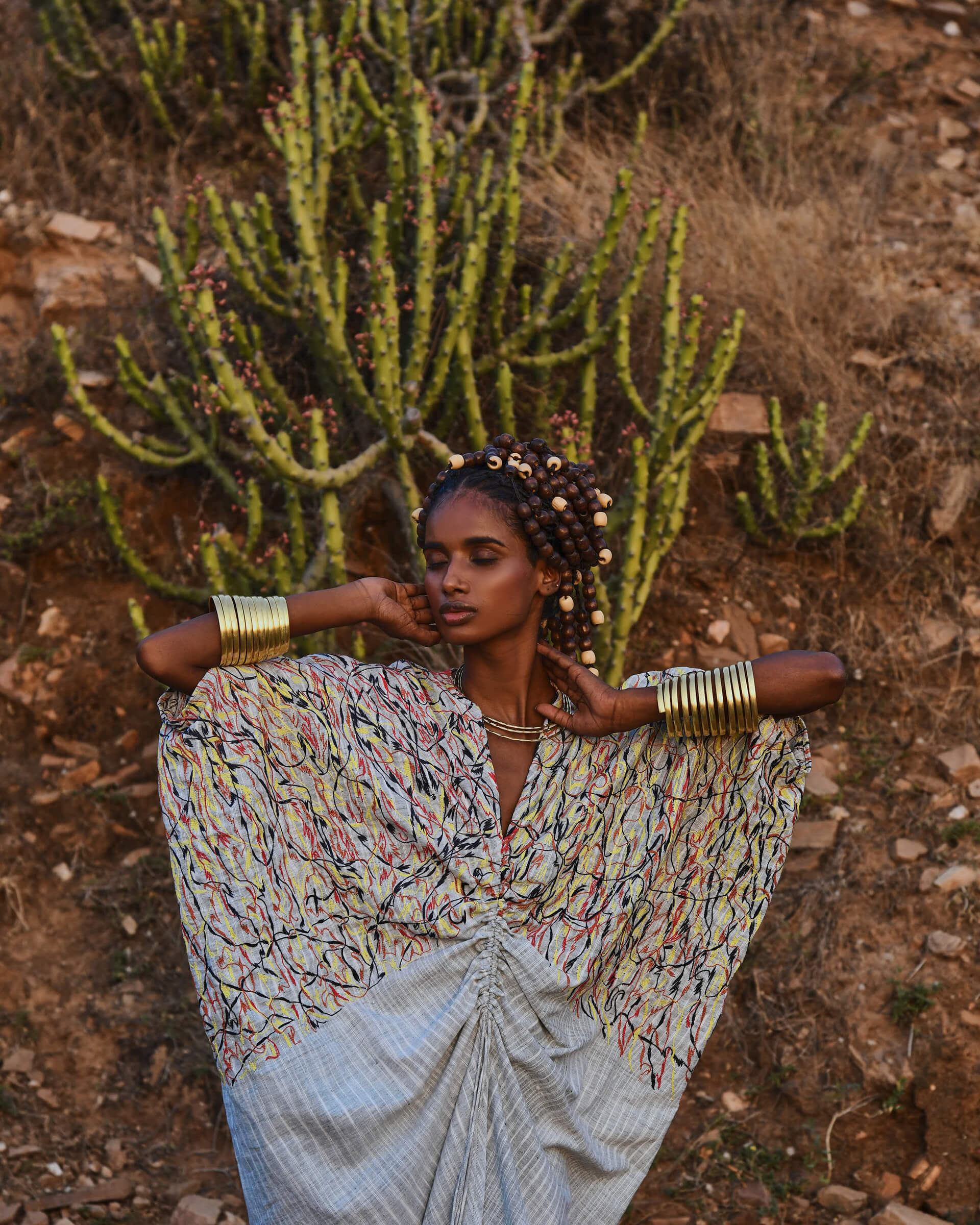 Jamala is essentially a beach-day outfit, but you can wear it any day of the week for sheer comfort too. With its kaftan-esque shape and adjustable tassles, this is the perfect overlay dress over your swimwear. The garment also features colourful abstract embroidery, resembling the African savannah.
