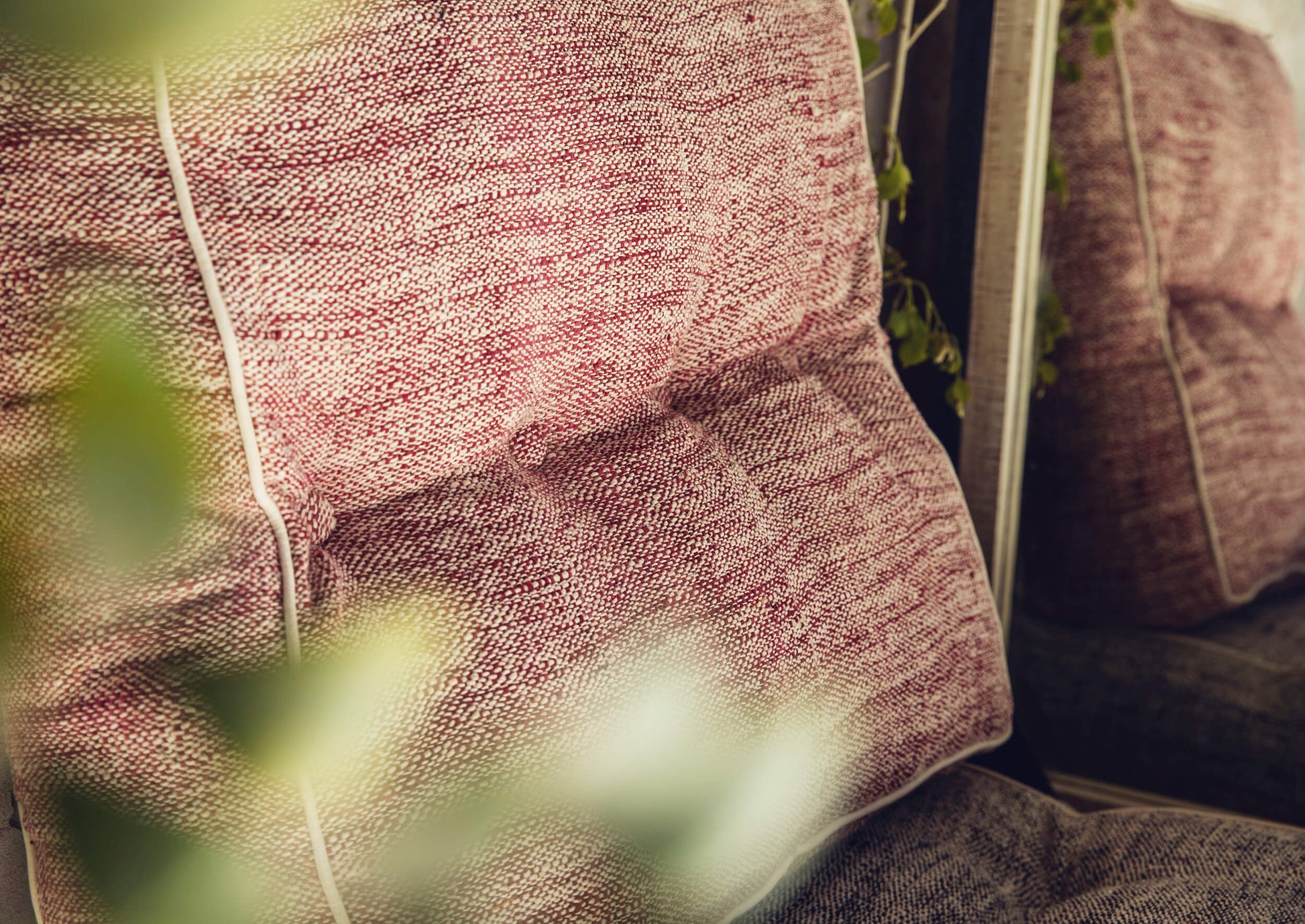 Fluffy floor cushions that can be placed anywhere, anytime. Use these portable pieces for gatherings with friends, or as a reading spot in the sun. They feature clean, minimalist borders and cute khadi buttons. Available in two colours: red and grey.