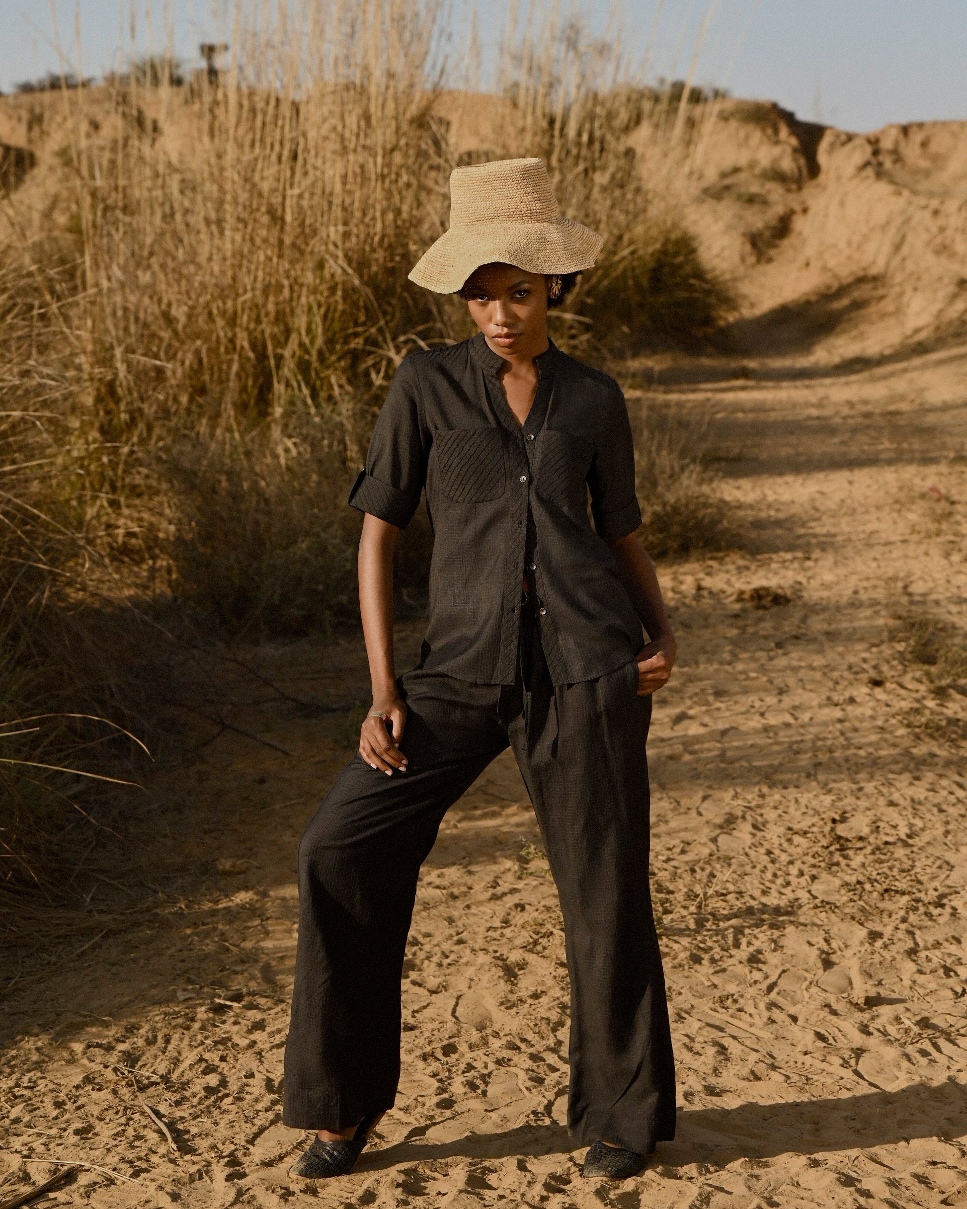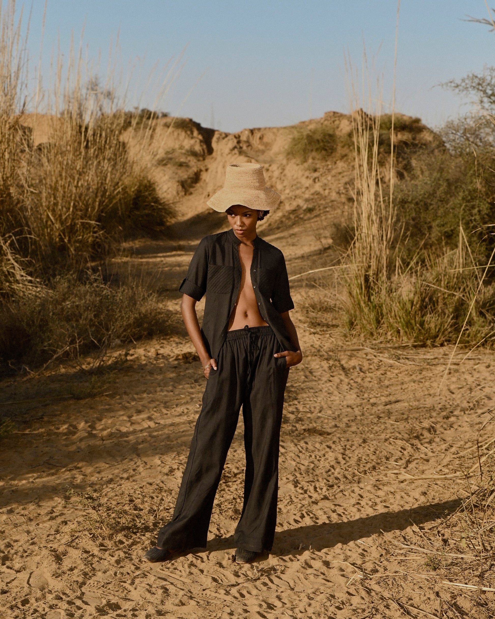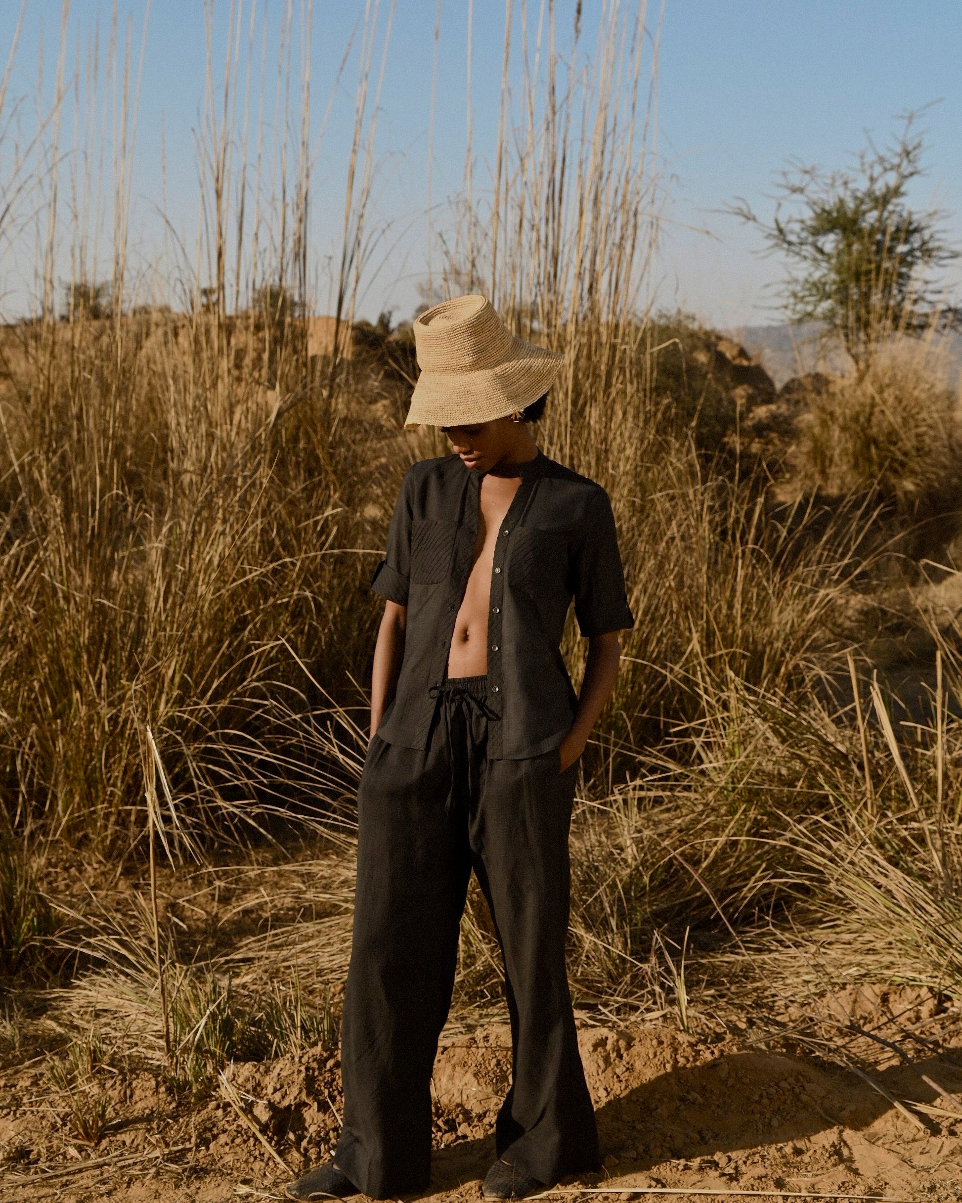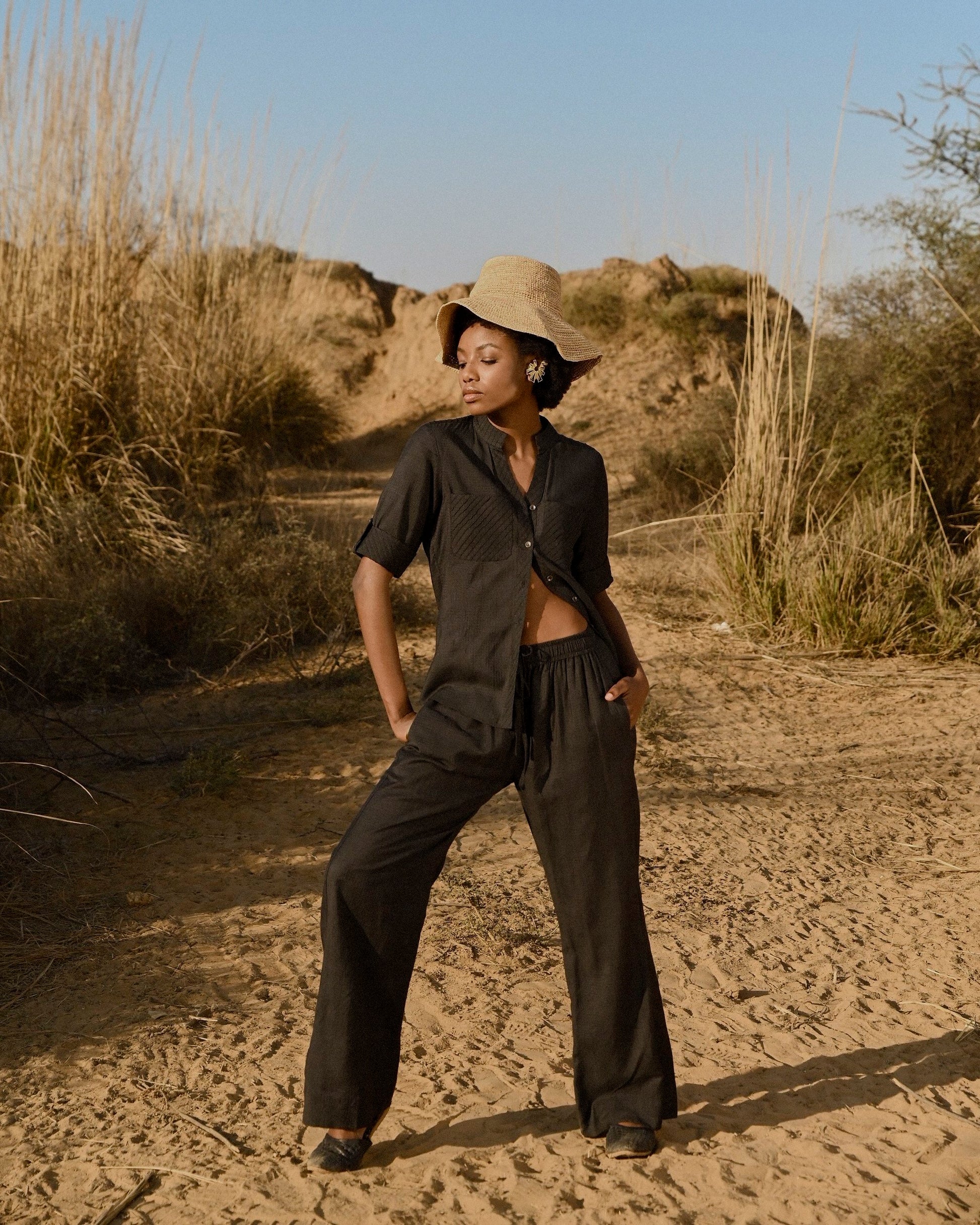 You can spend all day in the ever - versatile and wearable Thema Co-ord Set. Crafted in pure linen, this black ensemble is perfect for a formal gathering or an errand day around town.